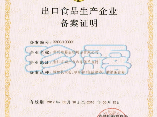 出口食品生產(chǎn)企業(yè)備案證明